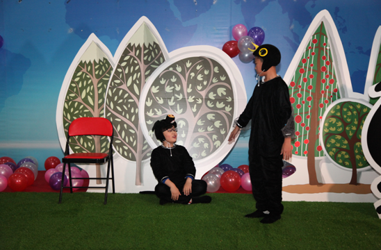 同学们表演《乌鸦和小猪》寓言故事