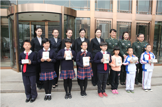 赠书活动结束后,军事博物馆老师与同学们合影